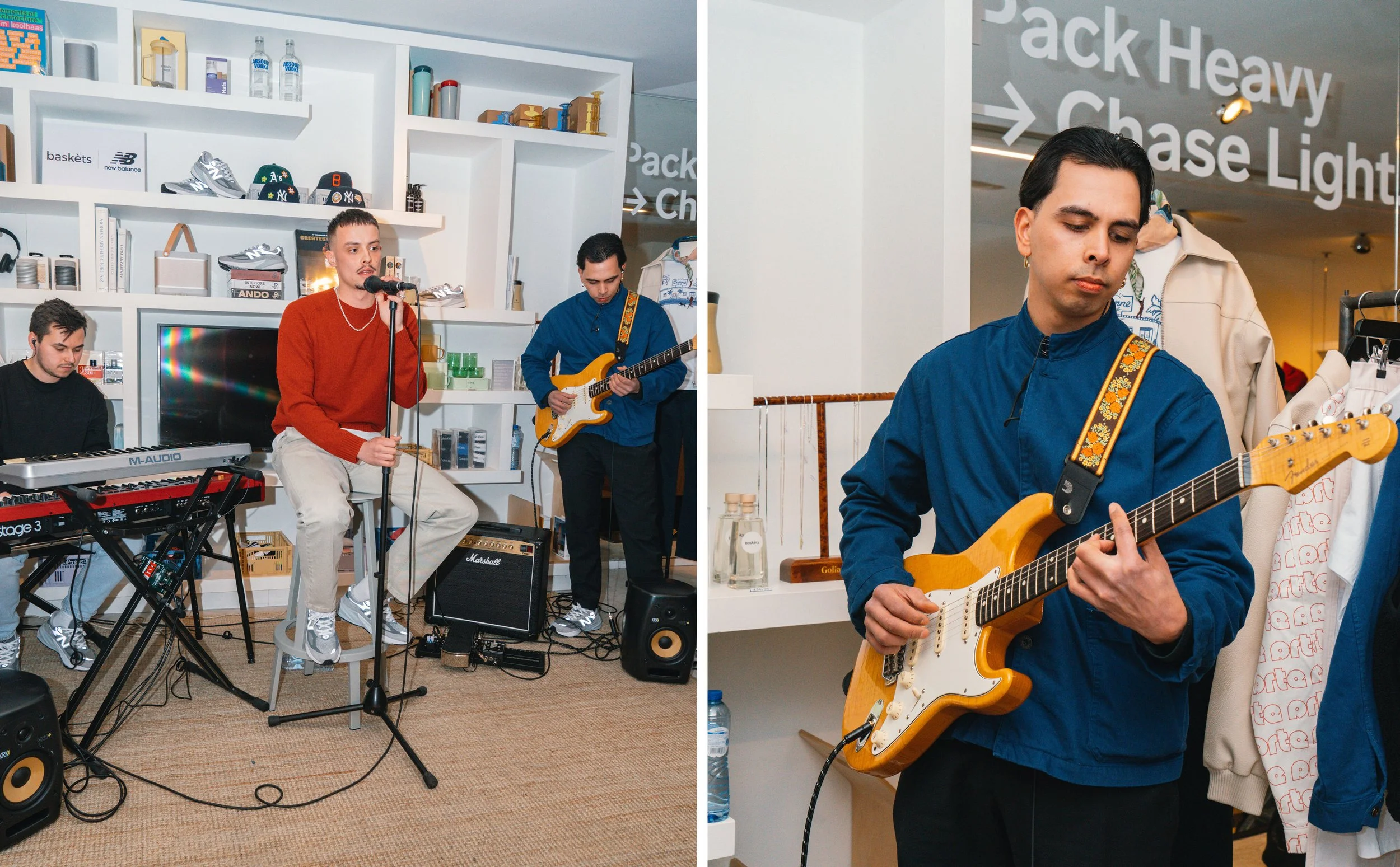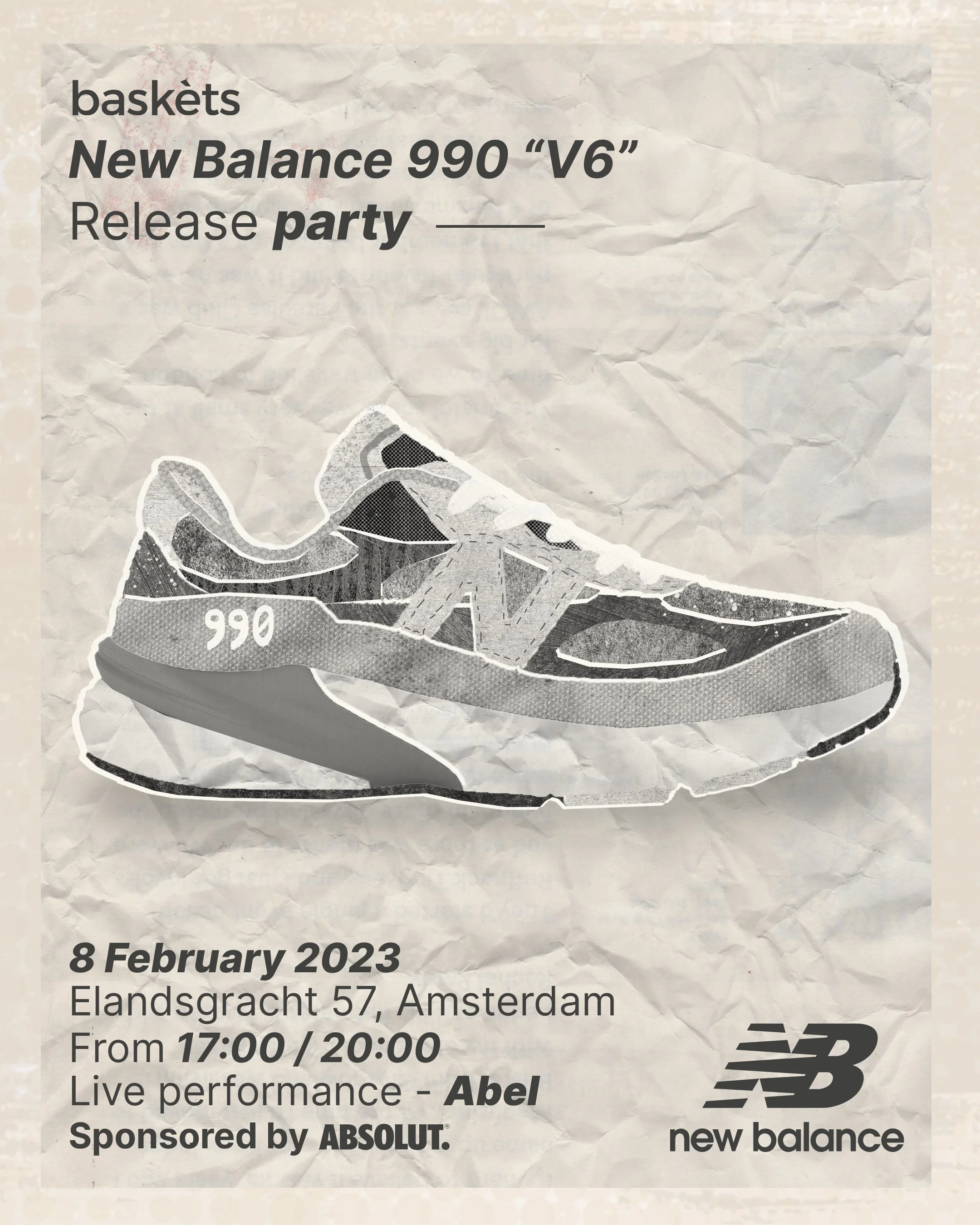 Next door, our Jordaan store was turned into a New Balance x Baskèts collaboration space, showing on co-branded flags and napkins. We’re so grateful for everyone who came to the launch event and enjoyed a delicious ABSOLUT cocktail at the bar. Visitors were entertained by a live performance of Abel, while savoring some delicious snacks. “